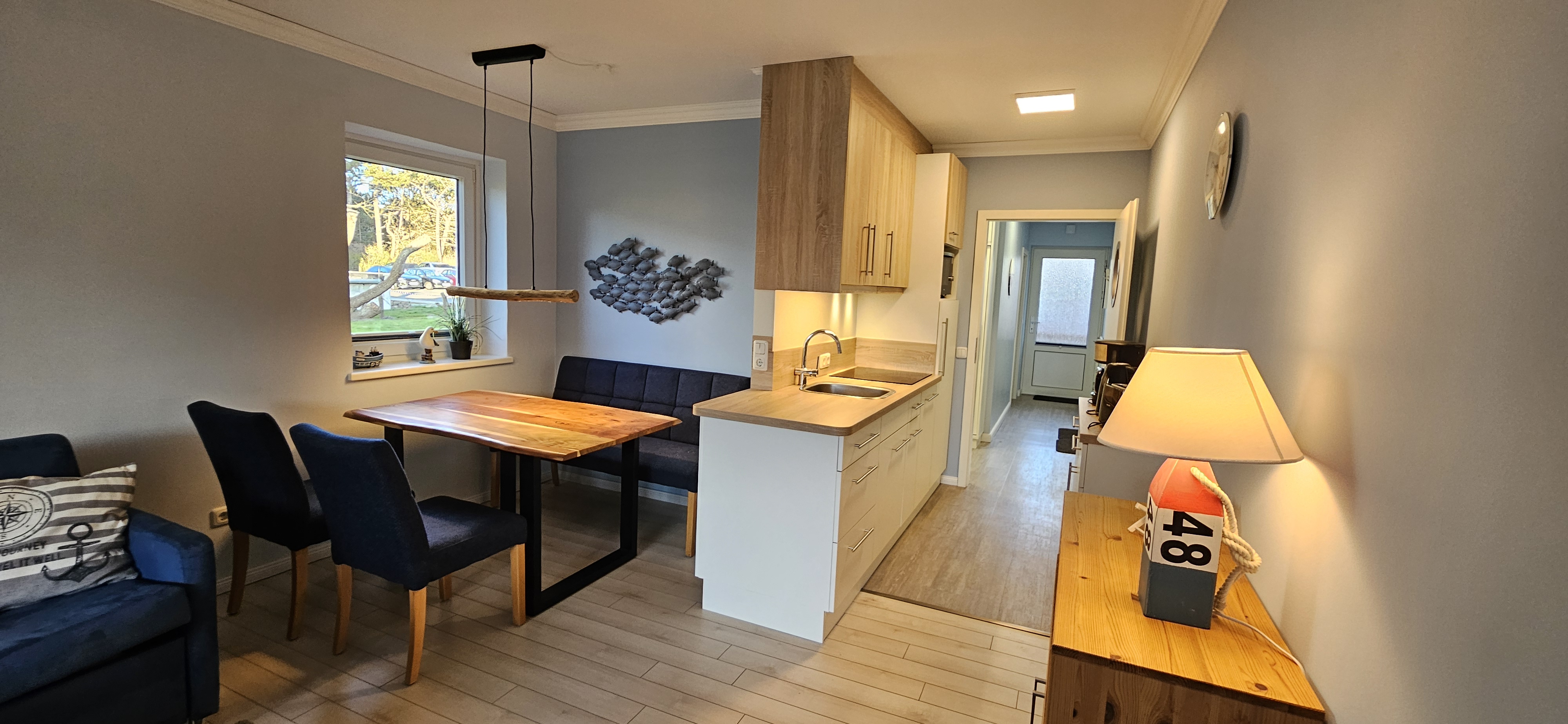 Die offen gestaltete, voll ausgestattete Küche grenzt direkt an den gemütlichen Essbereich - der ideale Ort für ausgiebige Urlaubsfrühstücke. Die Küche lässt keine Wünsche offen und macht die Selbstversorgung angenehm und unkompliziert.